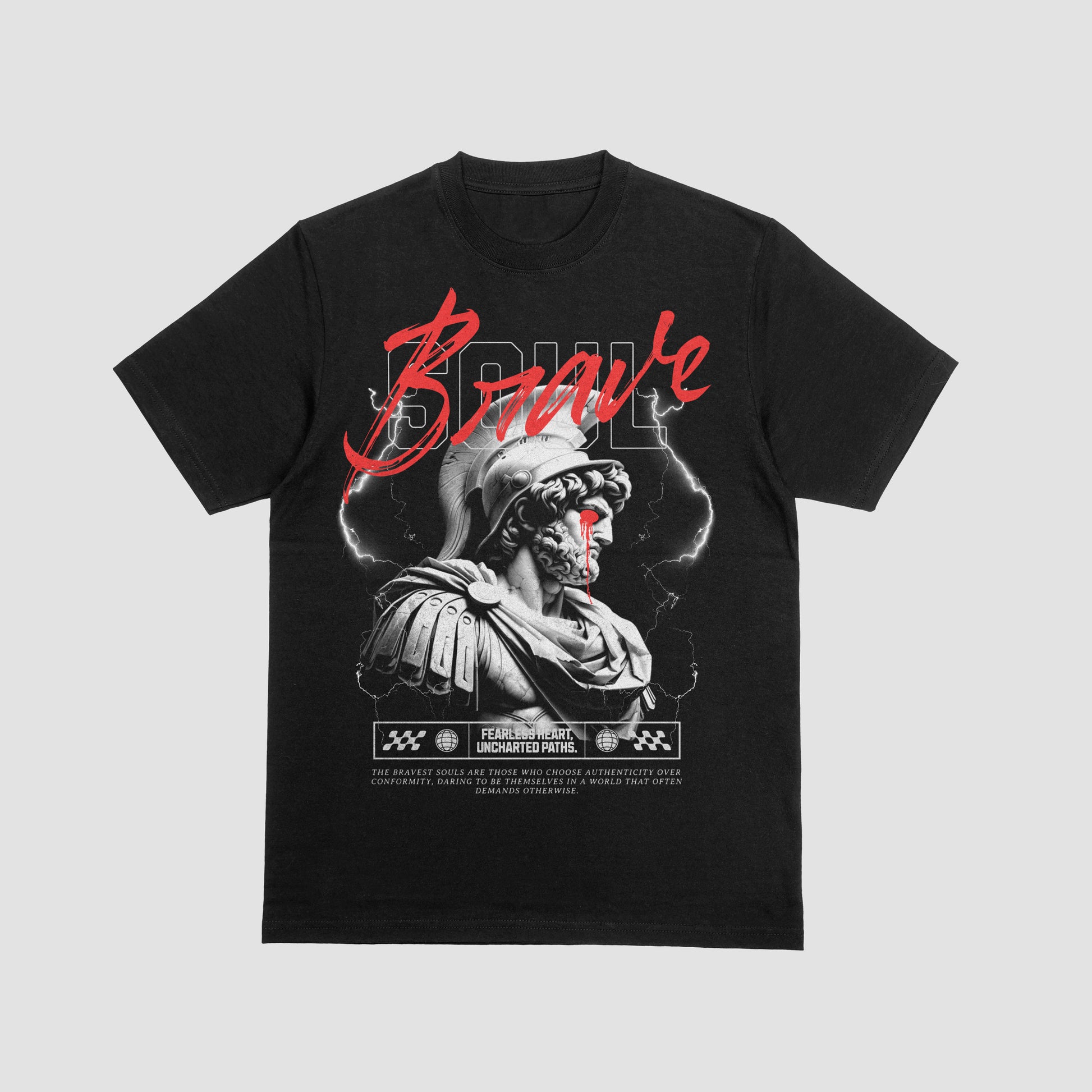 Charge into the unknown with the “Brave” Lightning Statue Tee—a bold fusion of classical valor and electric streetwear style. At its center, a marble warrior bust crackles with neon-white lightning, framed by a blood-red “Brave” script and geometric iconography. Underneath, our rallying cry—“Fearless Heart, Uncharted Paths”—and a stirring quote remind you that true courage means blazing your own trail.