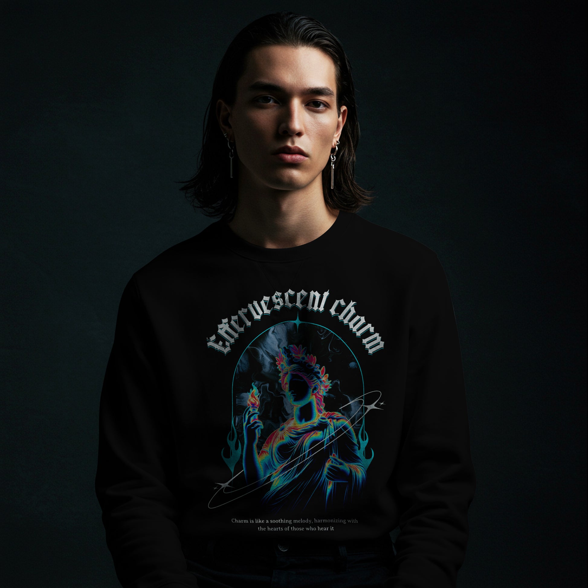 Elevate your style with the captivating Effervescent Charm tee — a fusion of classical art and modern psychedelic aesthetics. Featuring a radiant statue engulfed in cosmic flames and surrounded by celestial accents, this design glows with energy and mystique.